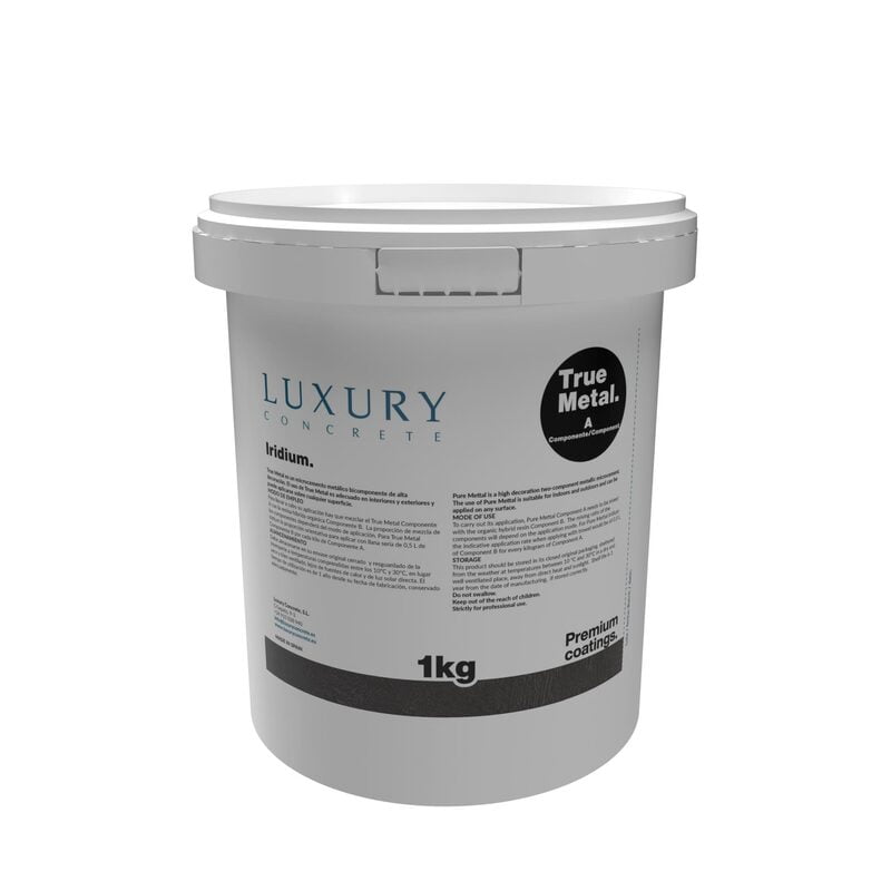 True Metal Iridium A is the A component of the True Metal two-component metallic coating. Suitable for walls and non-trafficable surfaces. Available in a 1kg container.